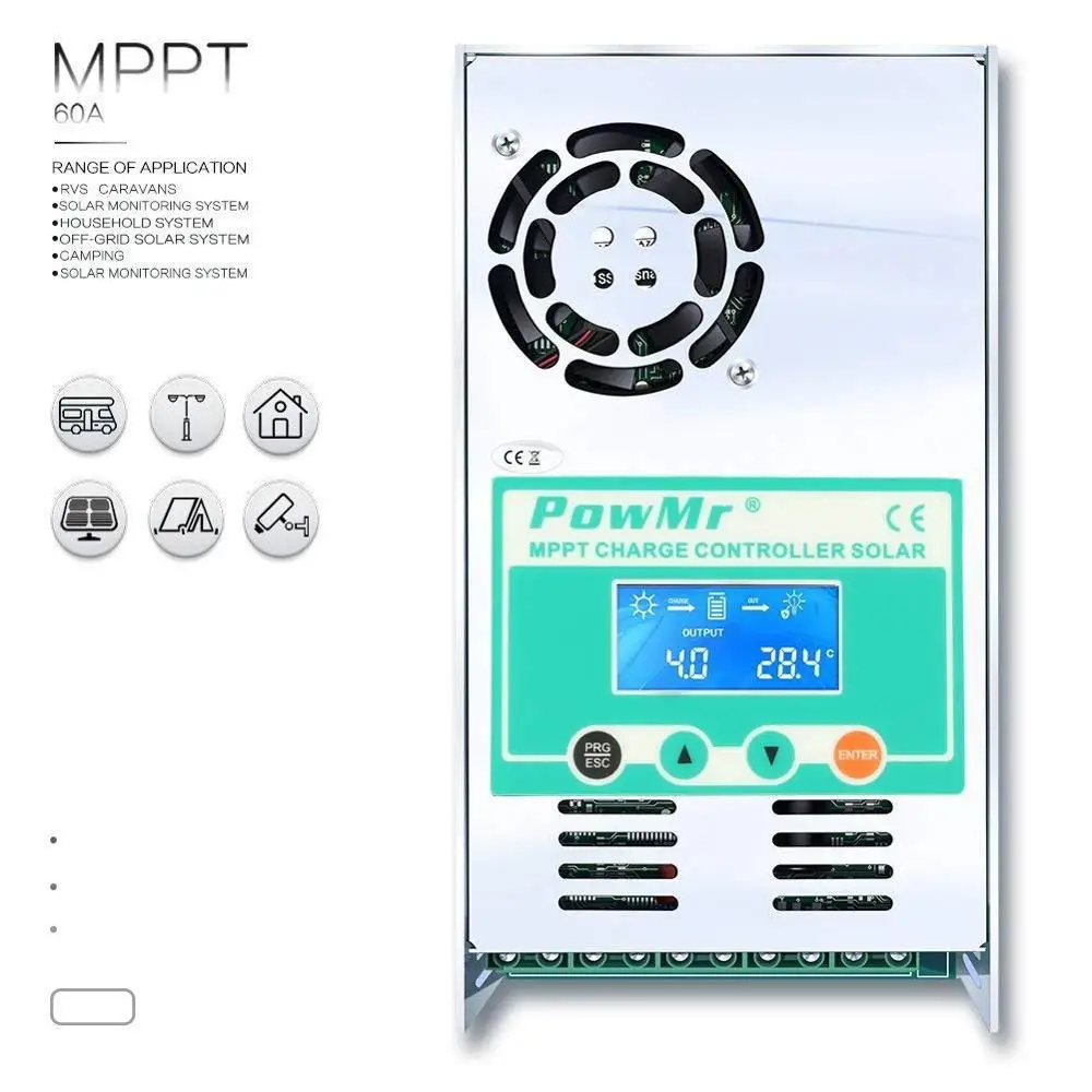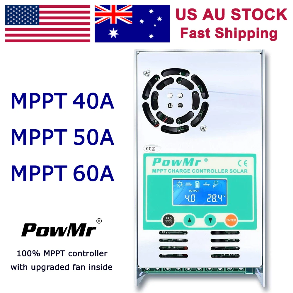 PowMr 60A 50A 40A MPPT контроллер солнечного заряда для 12 В 24 в 36 в 48 В постоянного тока Авто 190 в ПВ ЖК-дисплей панели солнечных батарей свинцово-кислотный литиевый аккумулятор регулятор