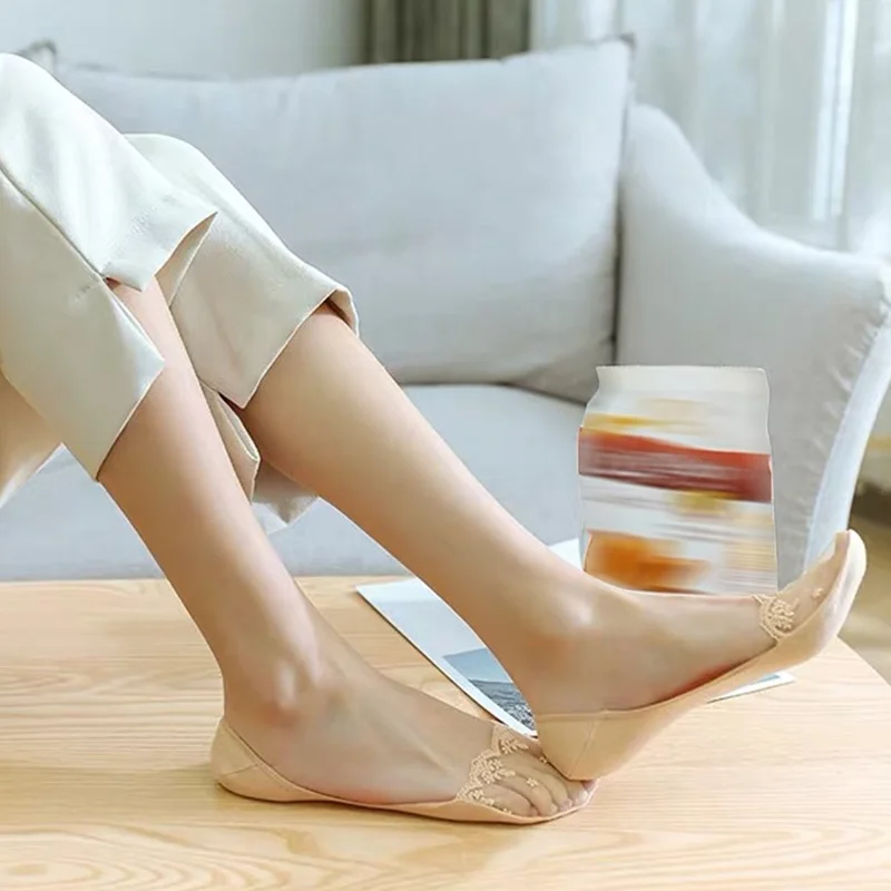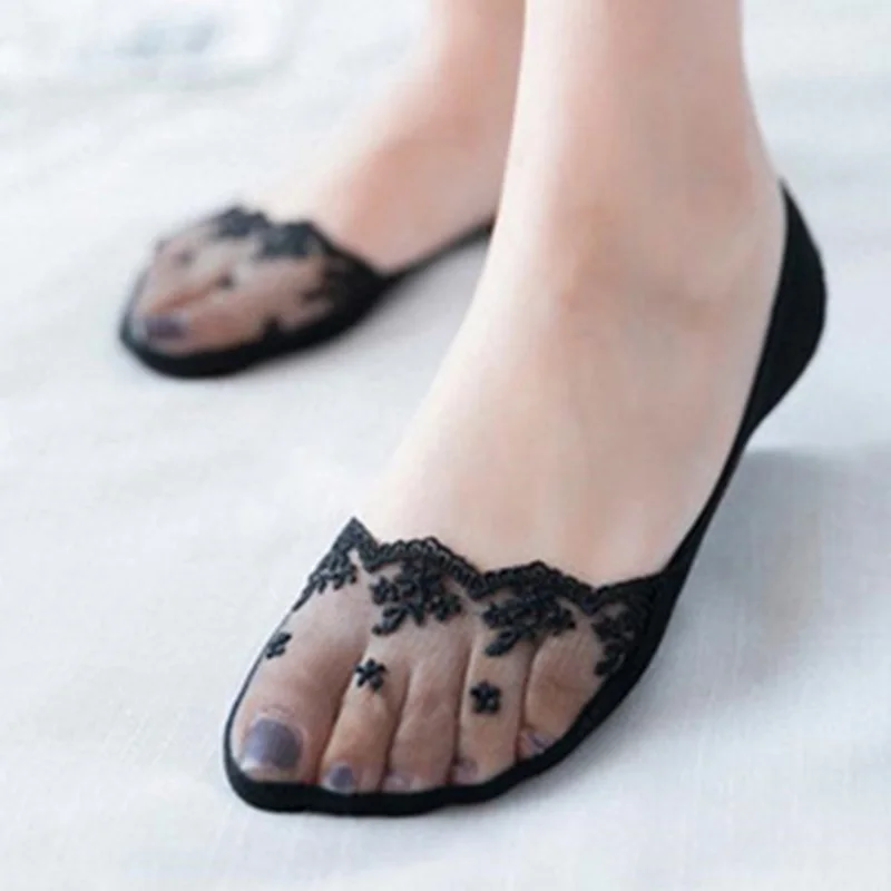 Низкие новые милые кружевные нескользящие носки без подкладки Лоферы женские невидимые лоферы