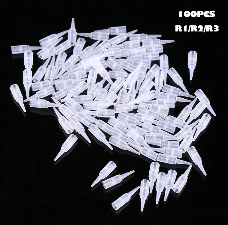 Одноразовые наконечники для тату-насадок, 100 шт., игла для микроблейдинга, пластиковая крышка 1R 3R 5R 5F 7F