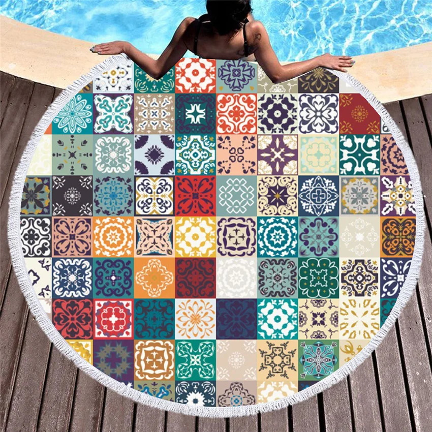 150 см круглое пляжное полотенце из микрофибры с кисточками летнее ...