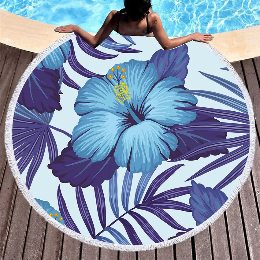 Летнее круглое пляжное полотенце из микрофибры с листьями и цветами...