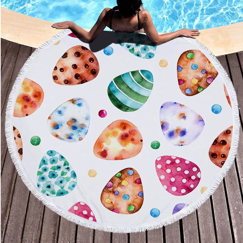 Круглое банное полотенце из микрофибры, с кисточками, 150 см