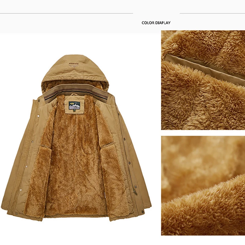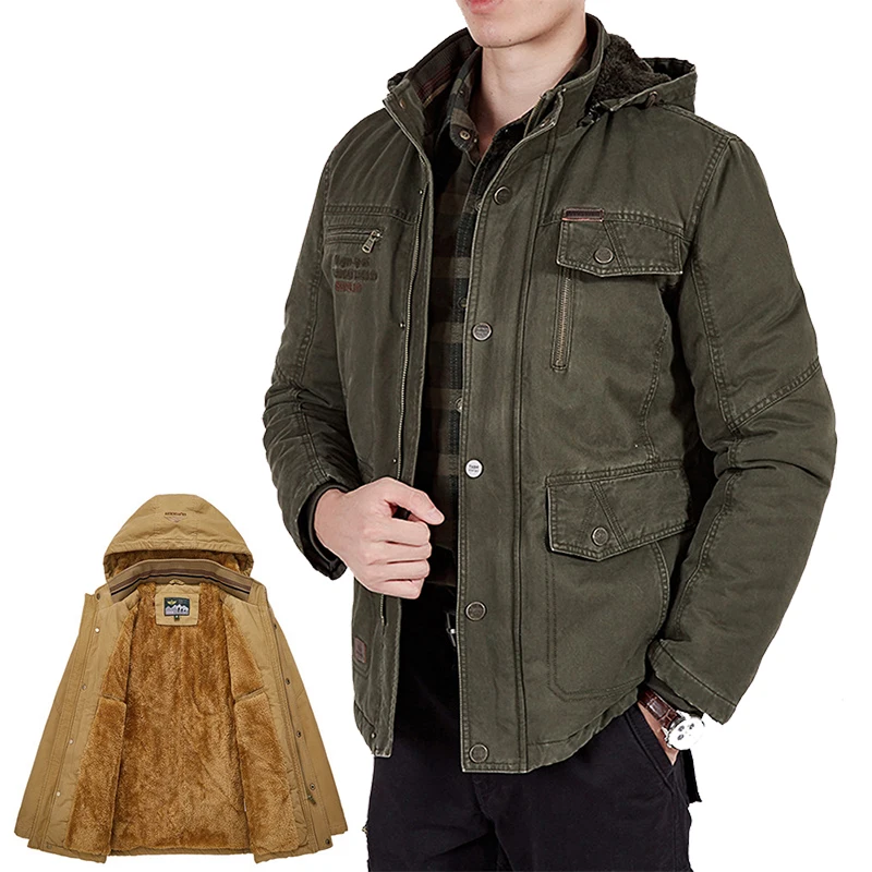 Ветровка мужская с капюшоном, утепленная парка в стиле милитари, с шерстяной подкладкой, размера плюс 7XL 8XL, зима