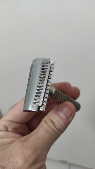 Заказ до Киева дошёл чуть больше чем за две недели. Я не эксперт по степеням агрессивности но голова агрессивная. На фото попытался отобразить, что лезвие стоит довольно ровно.. Пробовал с Зелёной Астрой, Shark и Спутником. Мне больше зашла эта голова с мягким Спутником. В общем новичкам точно не рекомендую. А тем кому не хватает агрессивного станка в самый раз.