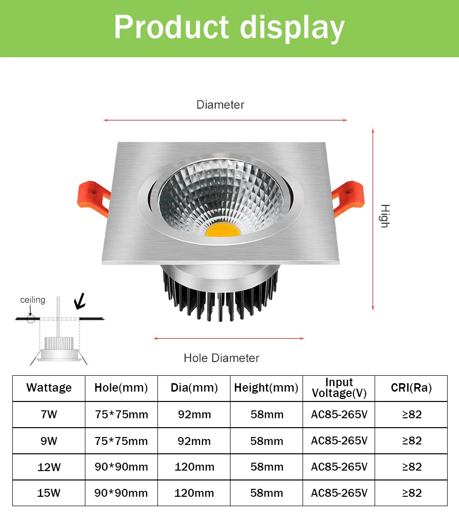 > Простота установки. Потолочные встраиваемые установлен. Драйвер inlcuded, Поддержка AC110V, AC220V, AC230V.
