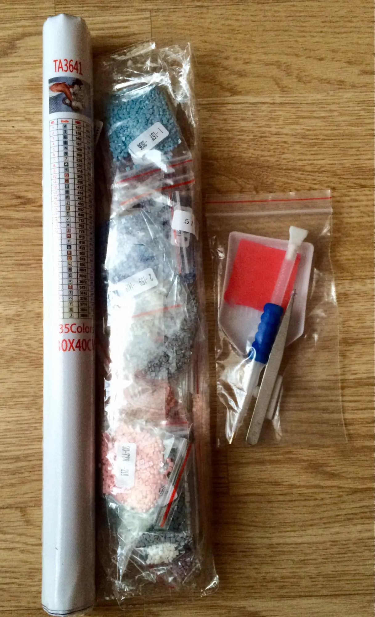 Пришло достаточно быстро. Упаковано в пупырчатый конверт, в комплекте набор инструментов, все стразики и холст. Когда заполним, дополним отзыв. Спасибо большое продавцу и Алиэкспресс