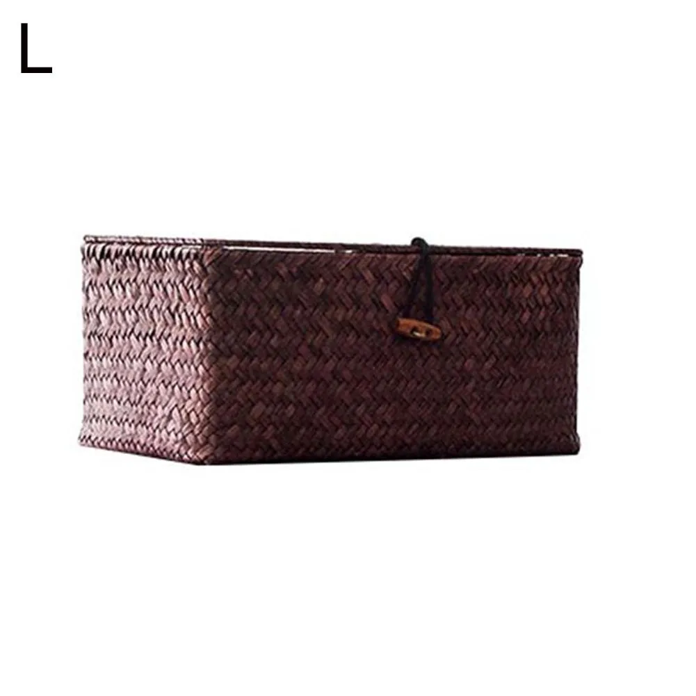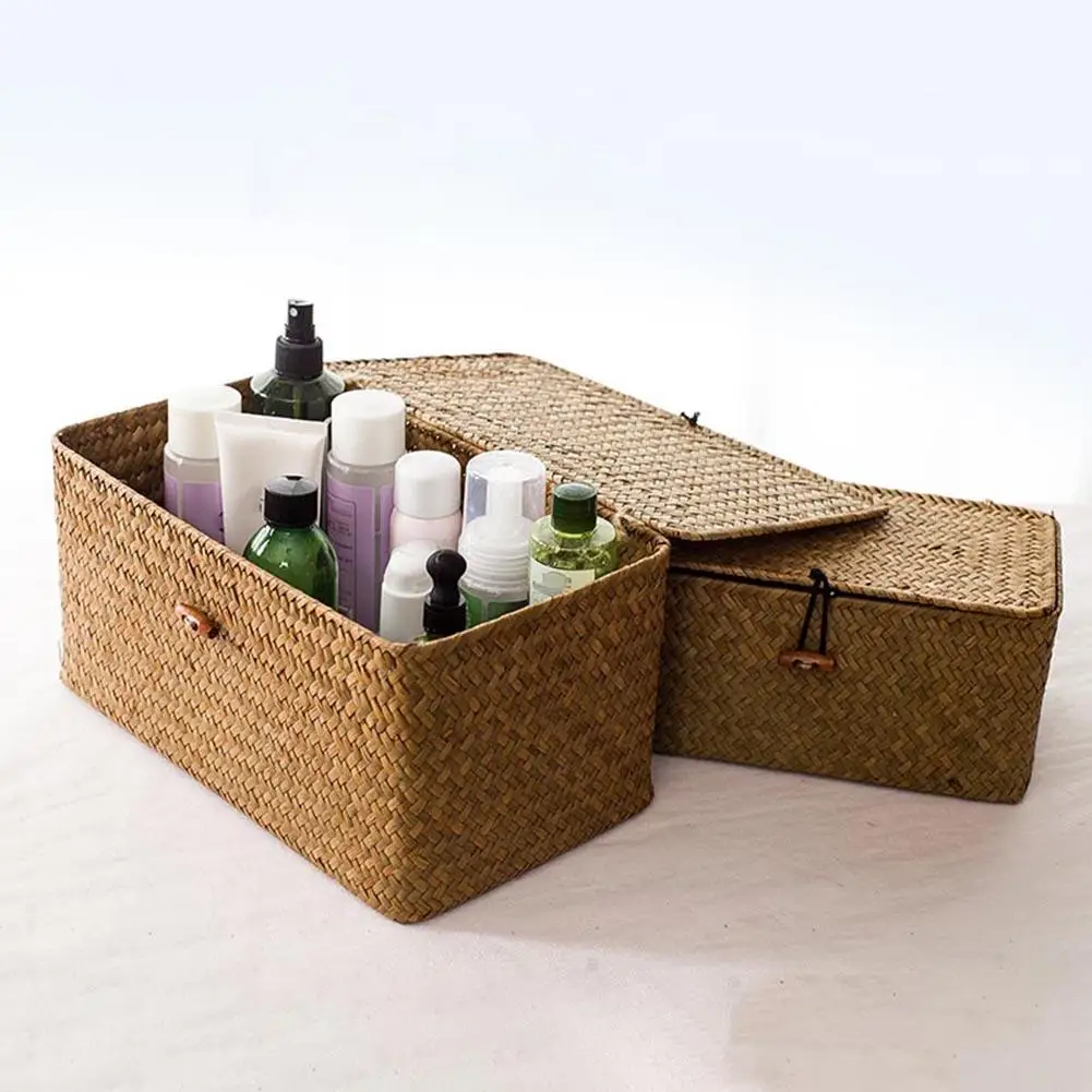 Плетеная соломенная коробка для хранения макияжа в стиле ретро, держатель для игрушек, одежды, корзина с крышкой, органайзер для макияжа дома, ротанговый