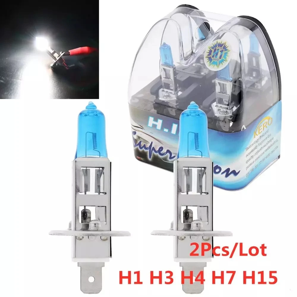 Супер яркие галогенные лампы H1 H3 H4 H7 H15 55 Вт 12 в 6000 К Автомобильная ксеноновая галогенная лампа Авто Передние Фары противотуманные лампы для автомобилей и транспортных средств