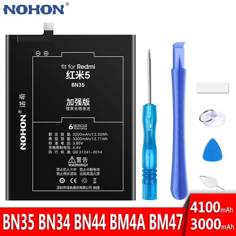 Аккумулятор NOHON для Xiaomi Redmi 5 Plus 3 Pro 3S 4X 5A BN35 BM47 BM4A BN44 BN34