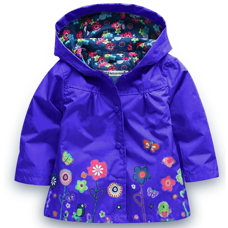 Весенне-осенняя куртка с цветочным принтом для маленьких девочек; Верхняя одежда; Детская ветровка с капюшоном; Дождевик для малышей; Верхняя одежда