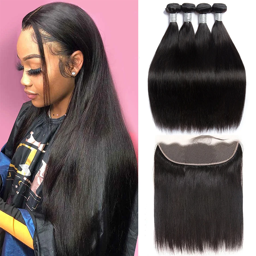 Virgo человеческие волосы, пряди с фронтальной перуанской прямой пряди волос с закрытием Remy
