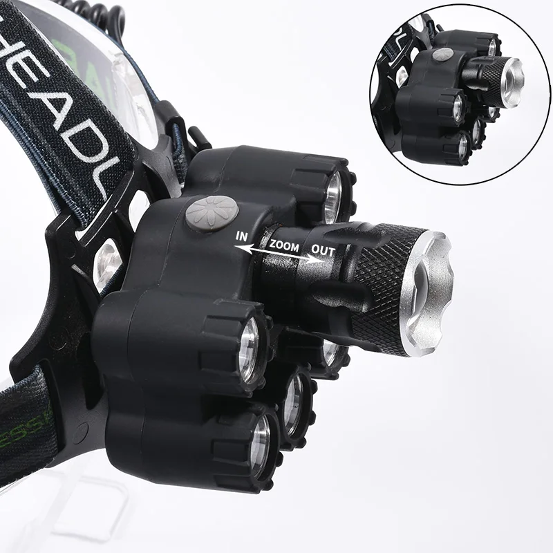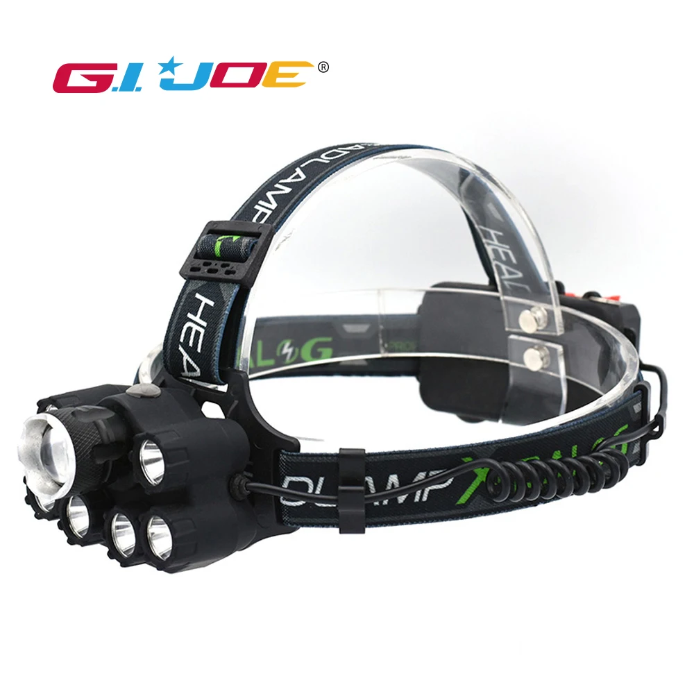 Налобный фонарь GIJOE T6, светодиодный, водонепроницаемый, перезаряжаемый через usb, 2000 лм, 2 аккумулятора 18650, супер яркий головной светильник, 6 режимов, задний светильник