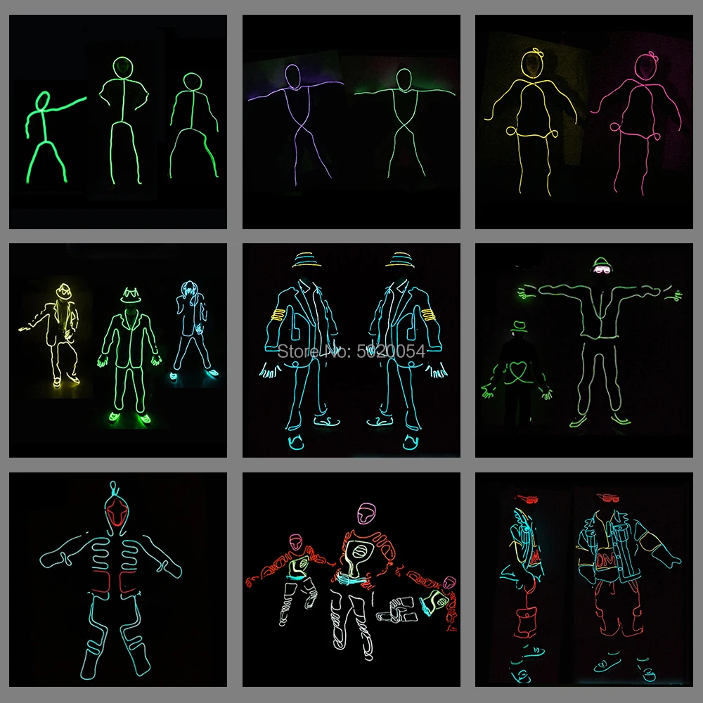 12 дизайнов, гибкий Эл провод, светящийся костюм, танцевальный DJ неоновый светодиодный светящийся костюм для сценического шоу