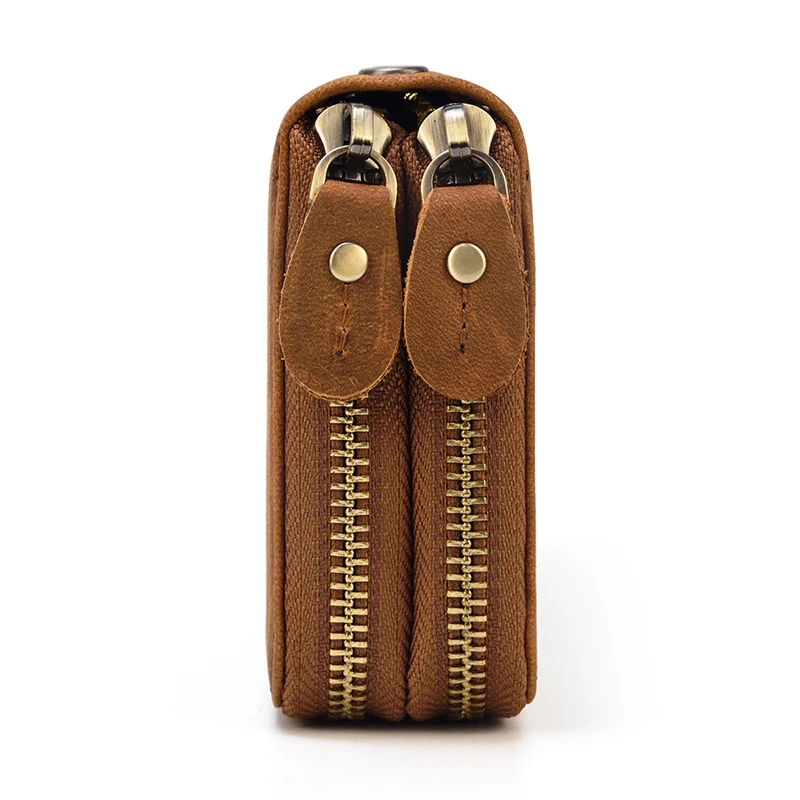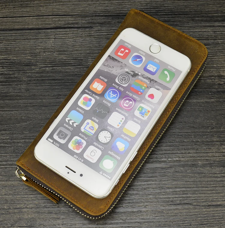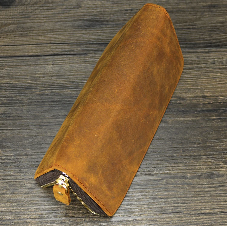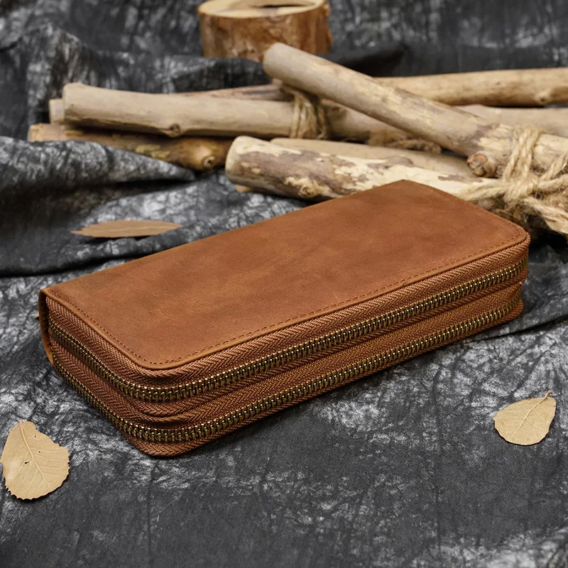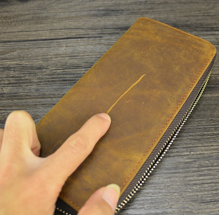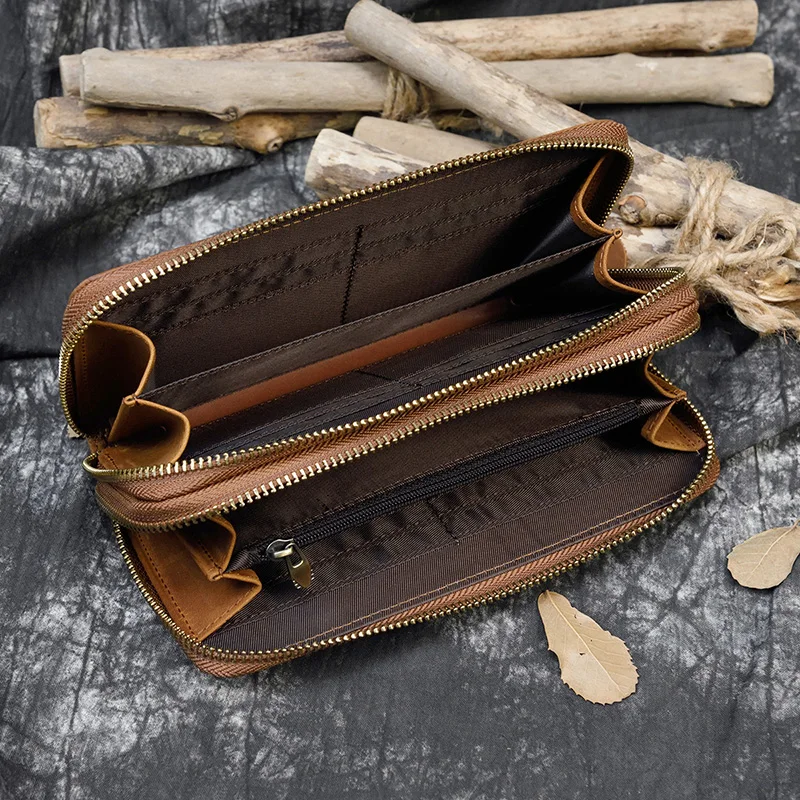 Винтажный Длинный кожаный кошелек Crazy Horse для мужчин и женщин, длинный бумажник на одной молнии для сотового телефона, карт, мелочи, наличные, с двойным прослойным слоем