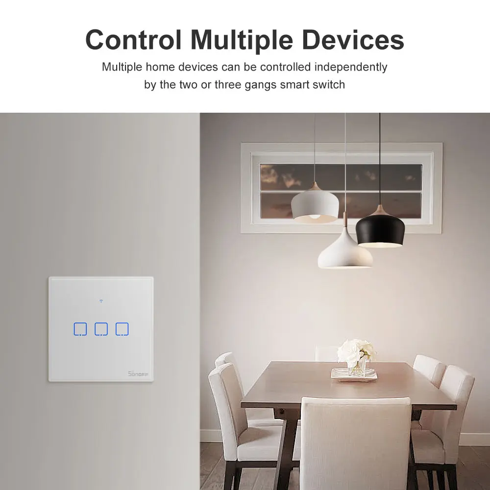 Sonoff T2 UK можно управлять удаленно с помощью телефона, а устройства, подключенные к переключателям, могут работать независимо. Работает с Amazon Alexa и Google Assistant, который позволяет включать или выключать ваши устройства с голосовой командой, идеально подходит для тех, кто должен обрабатывать много домашней работы одновременно. Особенности чувствительных сенсорных кнопок, которые крепятся на простых и стильных переключателях, чтобы обеспечить современное и приятное украшение на любой поверхности стены. Небольшой кран для более легкого управления.Установите время для устройств, и переключатели помогут вам включить или выключить их автоматически. Портной смарт-сцена для ваших приборов. Просто установите событие, чтобы вызвать одно устройство SONOFF или группы устройств с помощью нажатия на вашем телефоне. Ваши устройства не будут работать из-за аномальной сети Wi-Fi, управление локальной сети, следовательно, разработано, чтобы убедиться, что они могут нормально работать.Sonoff T2 UK поддерживает радиочастотный контроллер 433 МГц для управления.