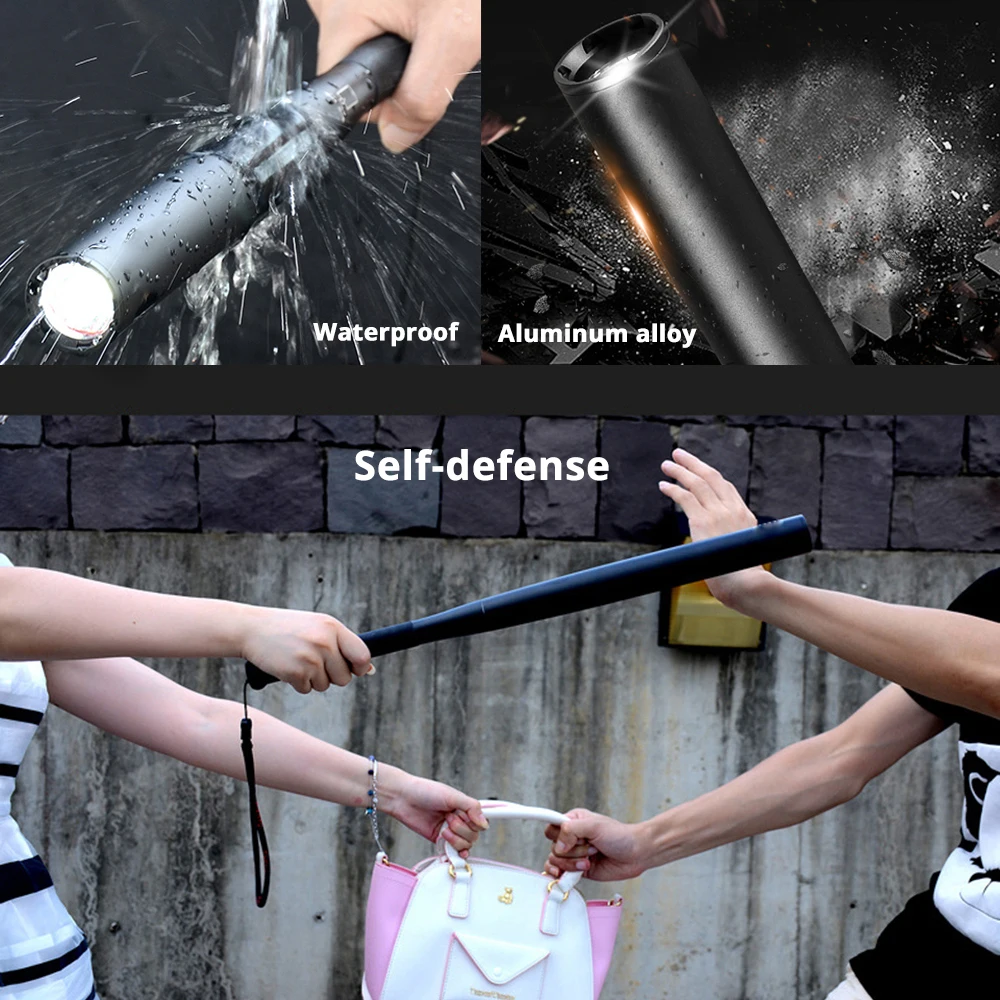 Светодиодная лампа Светодиодный фонарик в виде бейсбольной биты T6, суперъяркая дубинка для экстренных ситуаций и самообороны, наружного освещения