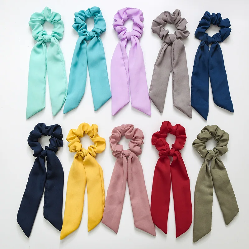 Новые однотонные шифоновые резинки с узелком (10 шт.лот), эластичные аксессуары для волос