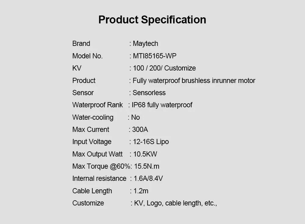 Maytech 85165 Jetsurf IP68 Водонепроницаемый бесщеточный двигатель Esurf Efoil 200KV 10.5KW Бессенсорный мощный двигатель