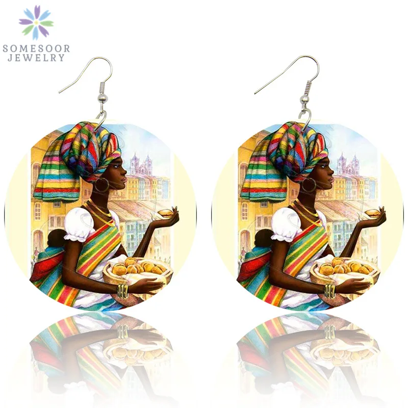 SOMESOOR афро меланин натуральные волосы деревянные висячие серьги ...