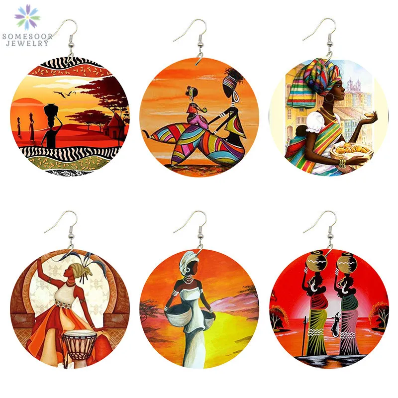 SOMESOOR лазерная гравировка афро деревянные висячие серьги Африкан...