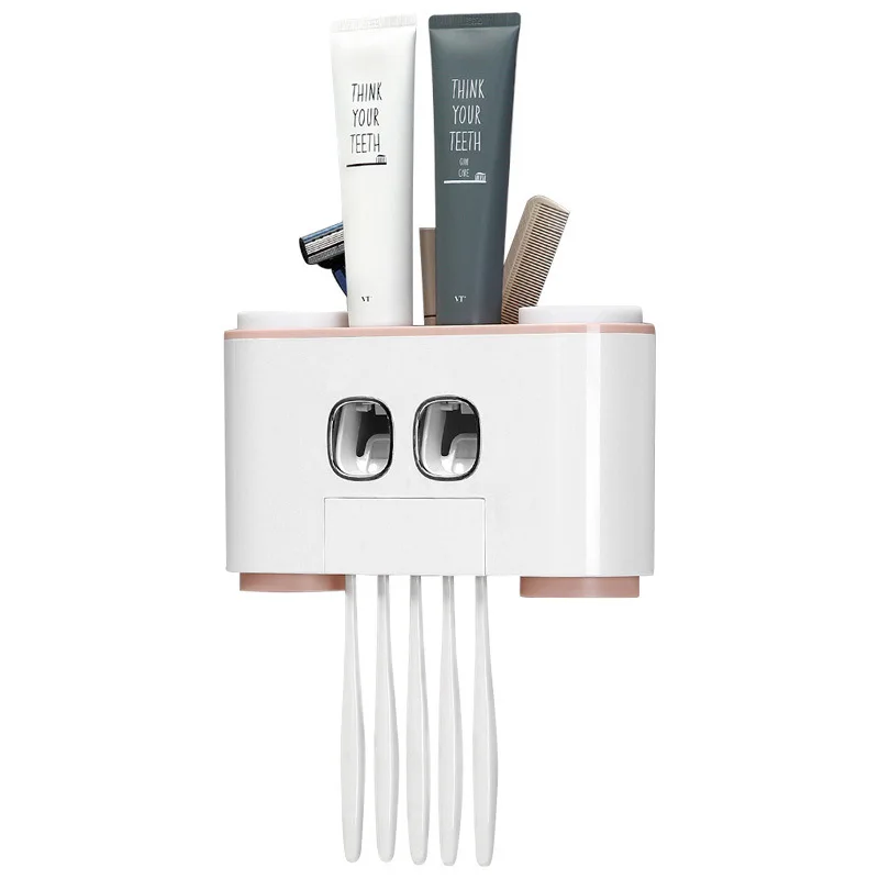 Настенный автоматический дозатор зубной пасты, 4 держателя для зубн...