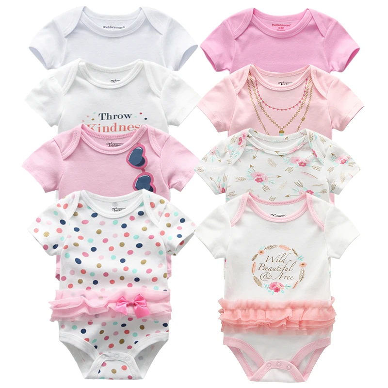 Боди для новорожденных, из хлопка, 8 шт.лот, с принтом, летняя одежда