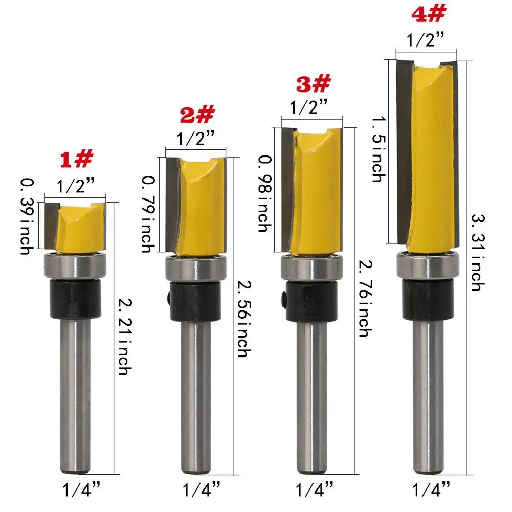 1/4 "хвостовик верхнего подшипника заподлицо отделка шаблон маршрутизатор бит экспорт деревообрабатывающий резец гравировальный станок Обрезки Дерева резак инструмент