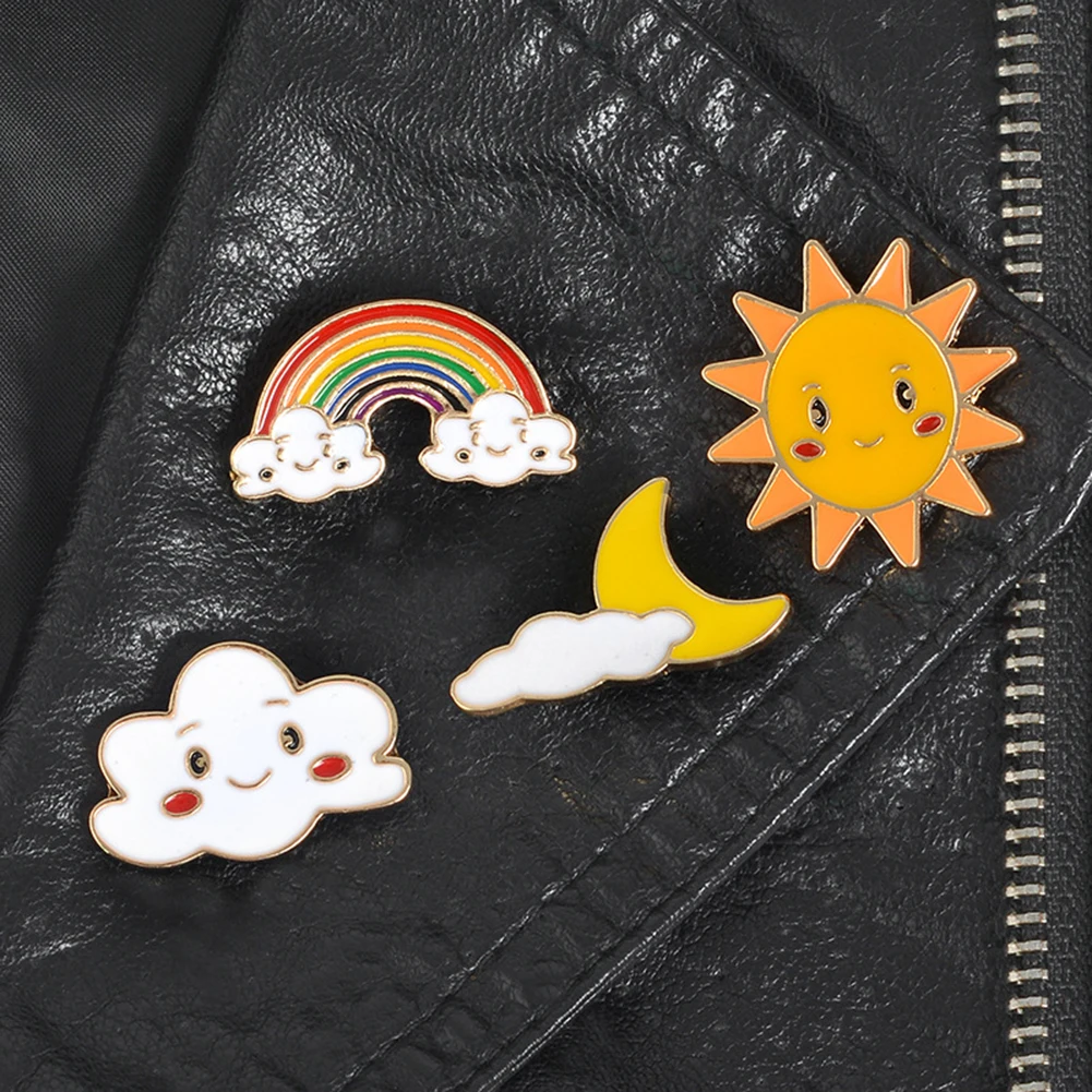 Мультфильм Солнце Луна облако Радуга искусственная кожа Сумка воротник лацкан значок ювелирные изделия Новинка