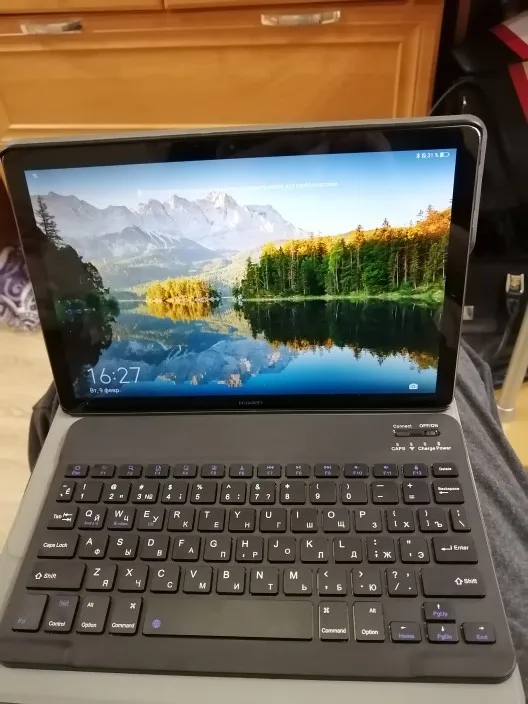 Заказал 31.10.2020, пришло 26.12.2020 (Санкт-Петербург). Продавец отправил быстро. Шло почти два месяца. Сначала о-о-очень долго лежало на сортировке в Харбине (в Китае), потом лежало без движения на сортировке в Екатеринбурге. Цена 2 051,35 руб. Упаковано добротно - многократно обмотано пленкой с пупырками. В комплекте сам чехол с клавиатурой, инструкция на китайском и английском, короткий USB проводок для зарядки клавиатуры от компьютера. Вдобавок, продавец положил небольшой стилус и защитную пленку для экрана планшета. Спасибо продавцу. Сама клавиатура легко подключилась по блютузу. Переключение раскладки на русский язык производится нажатием кнопок command (слева от пробела) и самого пробела. Клавиатура к чехлу крепится сильным магнитом, планшет плотно вставляется в силиконовый бокс. Если кто-то берет клавиатуру не для текста, а для использования в играх - не получится. По-крайней мере, в танках не все кнопки работают. А для текстов очень удобно. Продавца рекомендую.