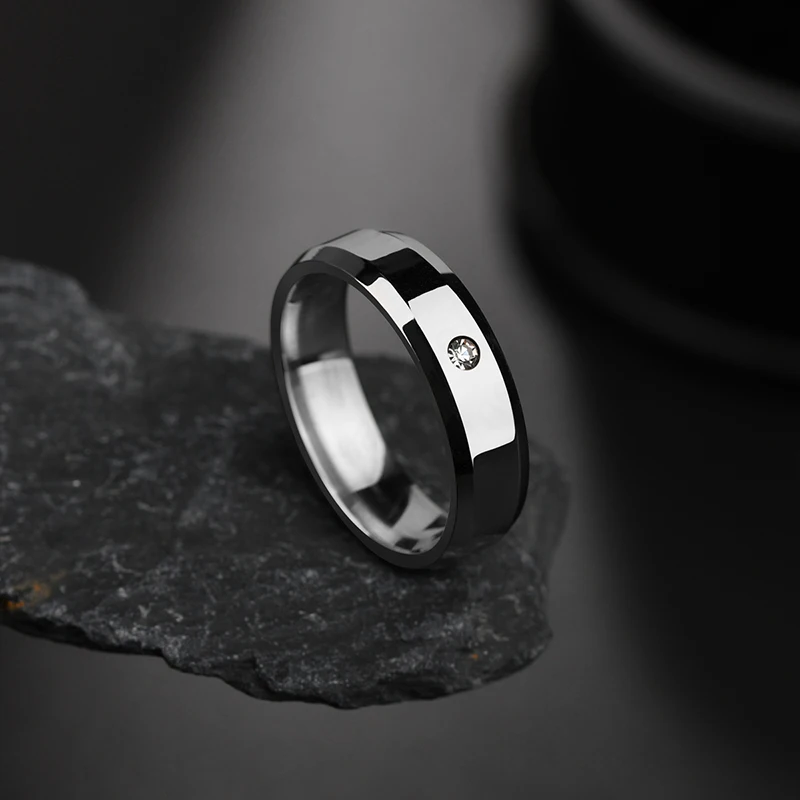 Auxauxme 6 мм титановые кольца из нержавеющей стали с кристаллами золотые, черные, серебряные Простые обручальные кольца ювелирные изделия для мужчин