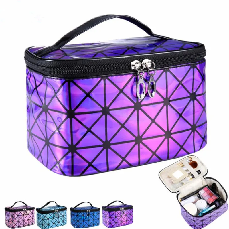 Многофункциональная женская сумка для макияжа с лазерным 3D эффектом, большая кожаная сумка-Органайзер со стразами, косметичка, дорожная сумка на молнии 25 #