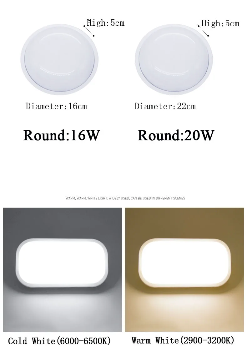 Светодиодный влагостойкий потолочный светильник IP65 Водонепроницаемый для ванной комнаты открытый садовый светильник 16 Вт 20 Вт круглый Овальный квадратный настенный светильник