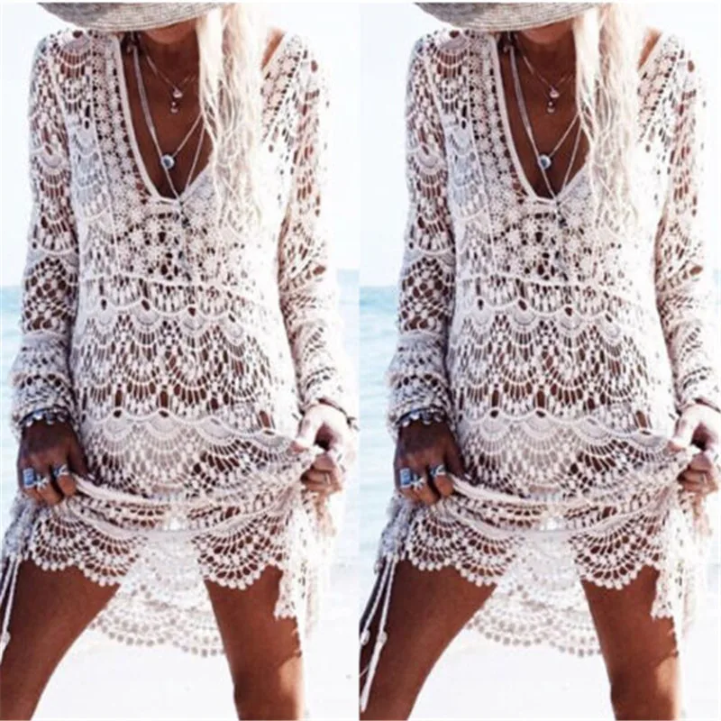 Сексуальное женское однотонное белое бикини, накидка, вязанное крючком пляжное платье, купальник, кружевной купальный костюм, летний праздничный костюм