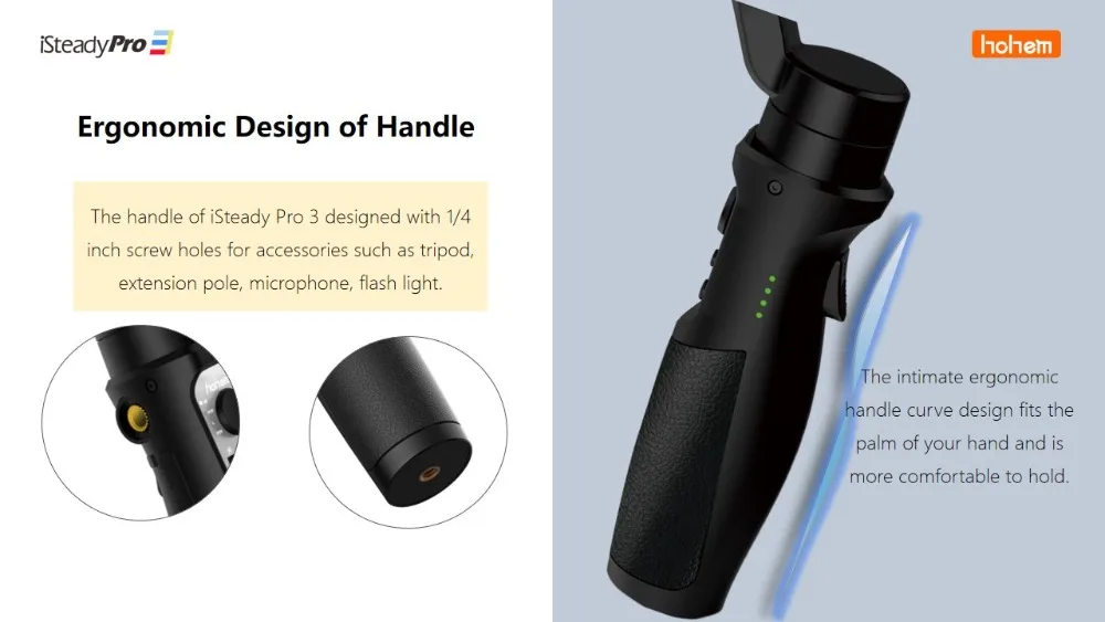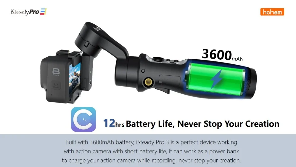 Особенности:Отличная совместимость экшн-камер: подходит для GoPro Hero 8/7/6/5/4/3, OSMO действий, Insta360 один R Sony RX0, YI cam, Mijia, SJCAM и другие экшн-камеры с аналогичными размерами и весом (150 г, 48*32 мм/высота * толщина).Ipsteady 3,0 анти-шаткая стабилизация и IPX4 защита от брызг воды дизайн: независимо от ежедневного vlog или спортивного движения, даже x-sports, ipsteady Pro 3 будет гарантировать вам плавность съемки, как всегда; IPX4 slash-proof дизайн, вы можете фотографировать и записывать видео свободно даже в дождливый день.Срок службы батареи 12 ч, никогда не останавливайте ваше создание: встроенный аккумулятор большой емкости 3600 мАч, iSteady Pro 3 может работать как powerbank для зарядки вашей экшн-камеры во время записи. До 12 часов работы от аккумулятора, никогда не останавливайте ваше создание.Быстрое подключение и переключатель режимов быстрой работы: встроенный модуль Wi-Fi, iSteady Pro 3 может управлять экшн-камерой, чтобы делать фото или записывать видео после получения соединения с камерой; И иметь возможность переключаться между различными режимами работы, нажав только кнопку mode, быстро изменить режим, который вы хотите.7 режимов работы делают вас полными творчества: поддерживает режим начала вращения на 600 °, режим времени движения, режим POV (точка зрения от первого лица), спортивный режим, режим Pan Follow, панорамирование и наклон следуют за всеми режимами блокировки, различные режимы работы позволяют вам наслаждаться фотографией свободно.Эргономичный дизайн ручки: ручка iSteady Pro 3 разработана с 1/4 дюймовыми винтовыми отверстиями для аксессуаров, таких как штатив, удлинитель, микрофон, вспышка; интимная эргономичная изогнутая ручка подходит для ладони и удобнее держать в руке.Технические характеристики:Бренд: hohemМодель: iSteady Pro 3Основной материал: абс + ПоликарбонатПоддерживаемый Размер камеры: Макс. Высота 48 мм, Макс. Толщина 32 ммПолезная нагрузка: 150gУгол наклона: 320 °Угол поворота: 320 °Угол панорамирования: 600 °Тип аккумулятора: литий-ионный аккумулятор 18650Срок службы батареи: 12 часовВремя работы от аккумулятора с модулем Wi-Fi: 6 часовВремя зарядки: 3,5 часовРабочая температура: -10 ℃ ~ 45 ℃Зарядка для экшн-камеры: ДаНастройки приложения: ДаВес изделия: 365 г/(батарея входит в комплект)Размер упаковки: 31,5*14*5 см/12,4*5,5*2 дюймаВес упаковки: 640 гПримечание:Экшн-камера, показанная на картинке, не входит в комплект.В комплект входит:1 * стабилизатор1 * Мини штатив-Трипод1 * USB кабель1 * кабель для зарядки-1 шт. • чехол для переноски1 * Руководство пользователя (английский и японский и немецкий и итальянский и французский и испанский)
