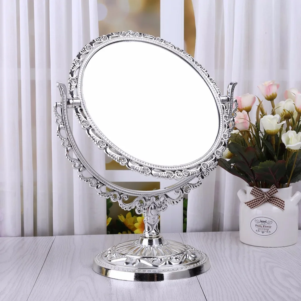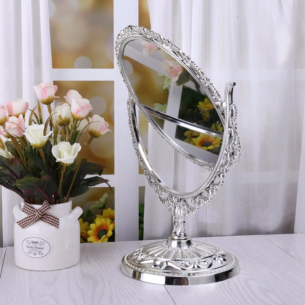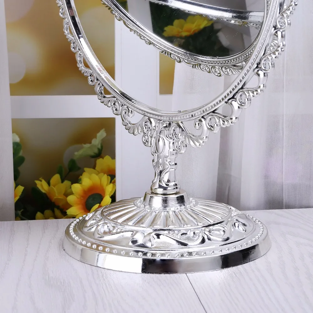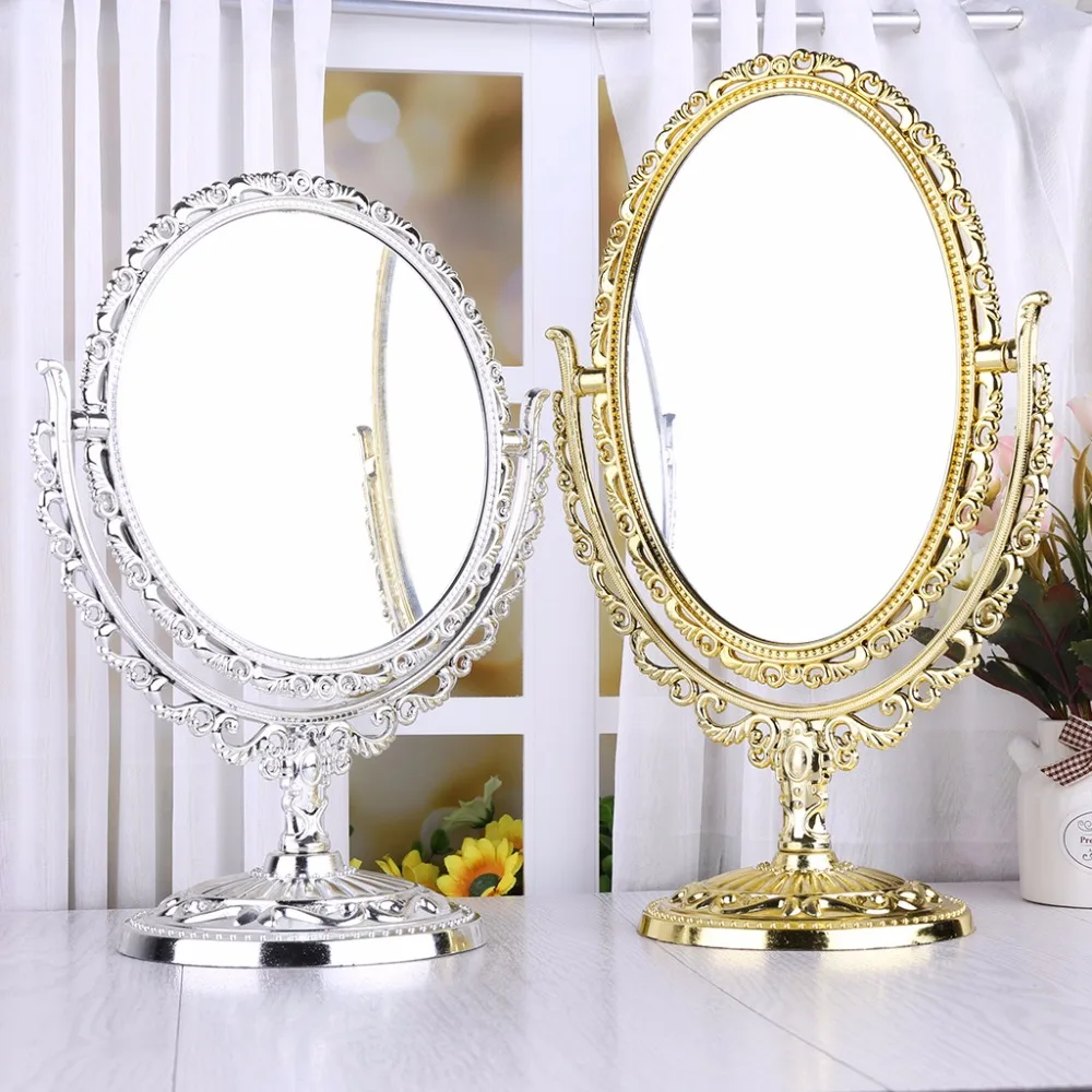 Зеркало для макияжа с 2 Сторонами, настольное косметическое зеркало, пластиковые зеркала для туалетного столика, инструменты, эллипскруглая форма