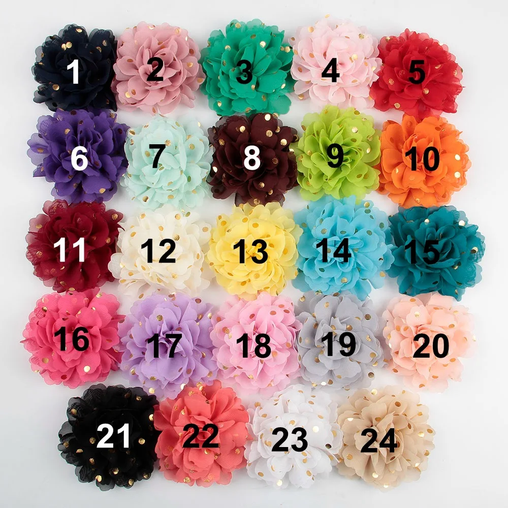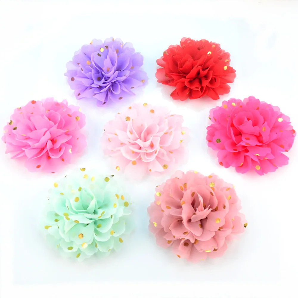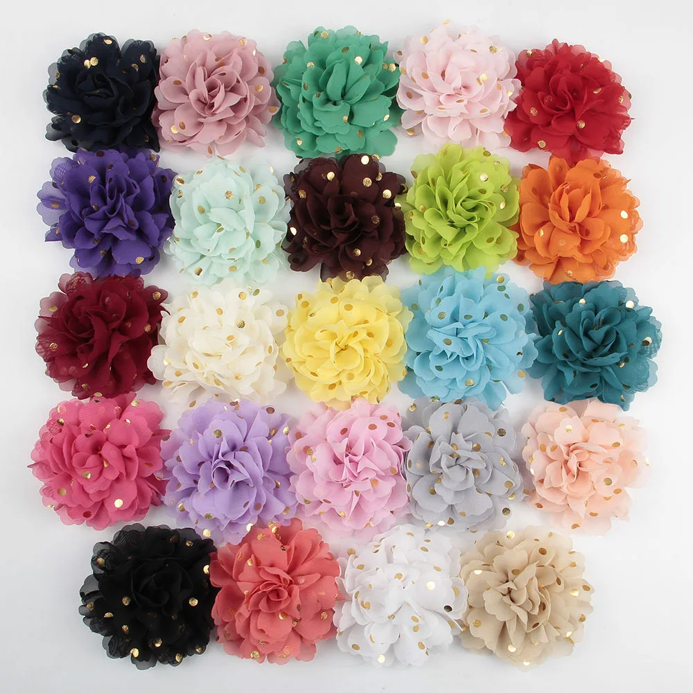 10 шт.лот 4 дюйма шифоновая ткань цветы в Золотой горошек для Diy повязка на голову заколки для девочек головные уборы ручной работы аксессуары для волос