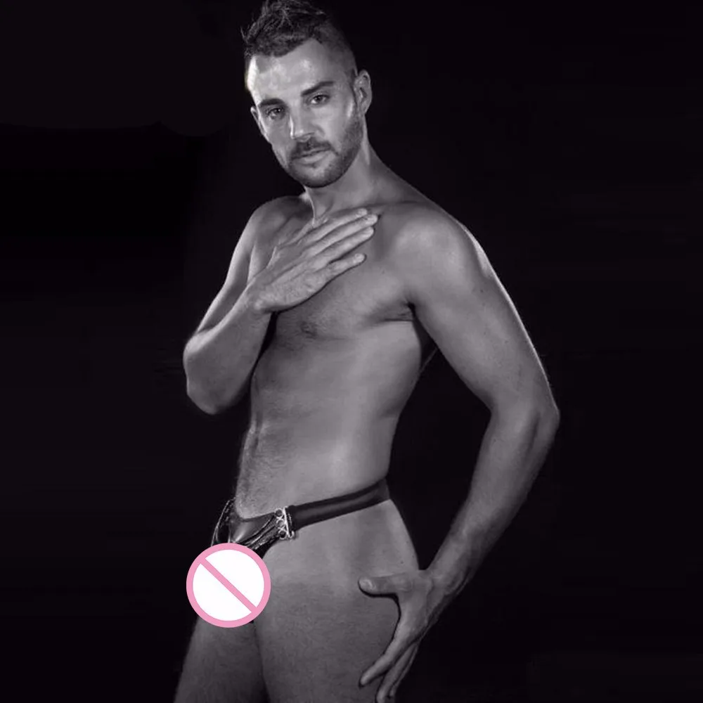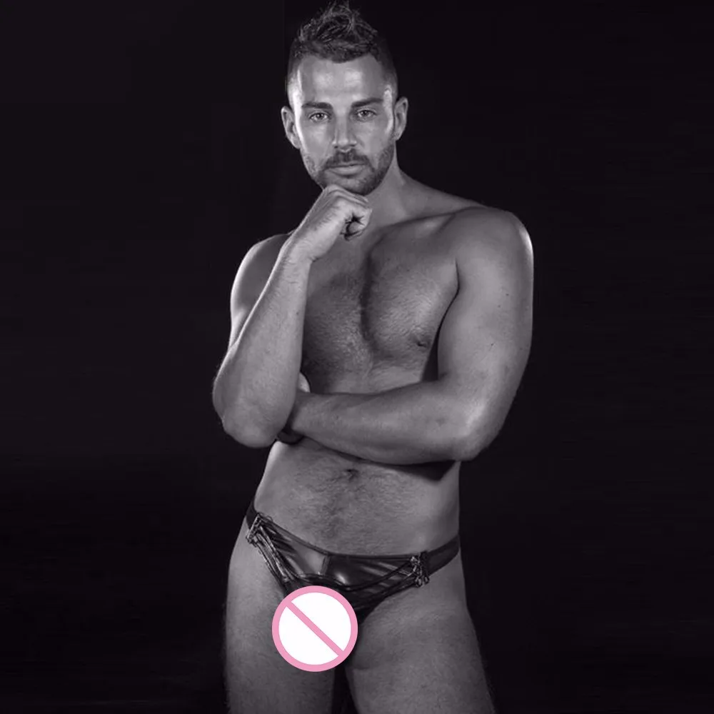 Сексуальное нижнее белье для геев, мужские стринги из искусственной кожи с открытой спиной