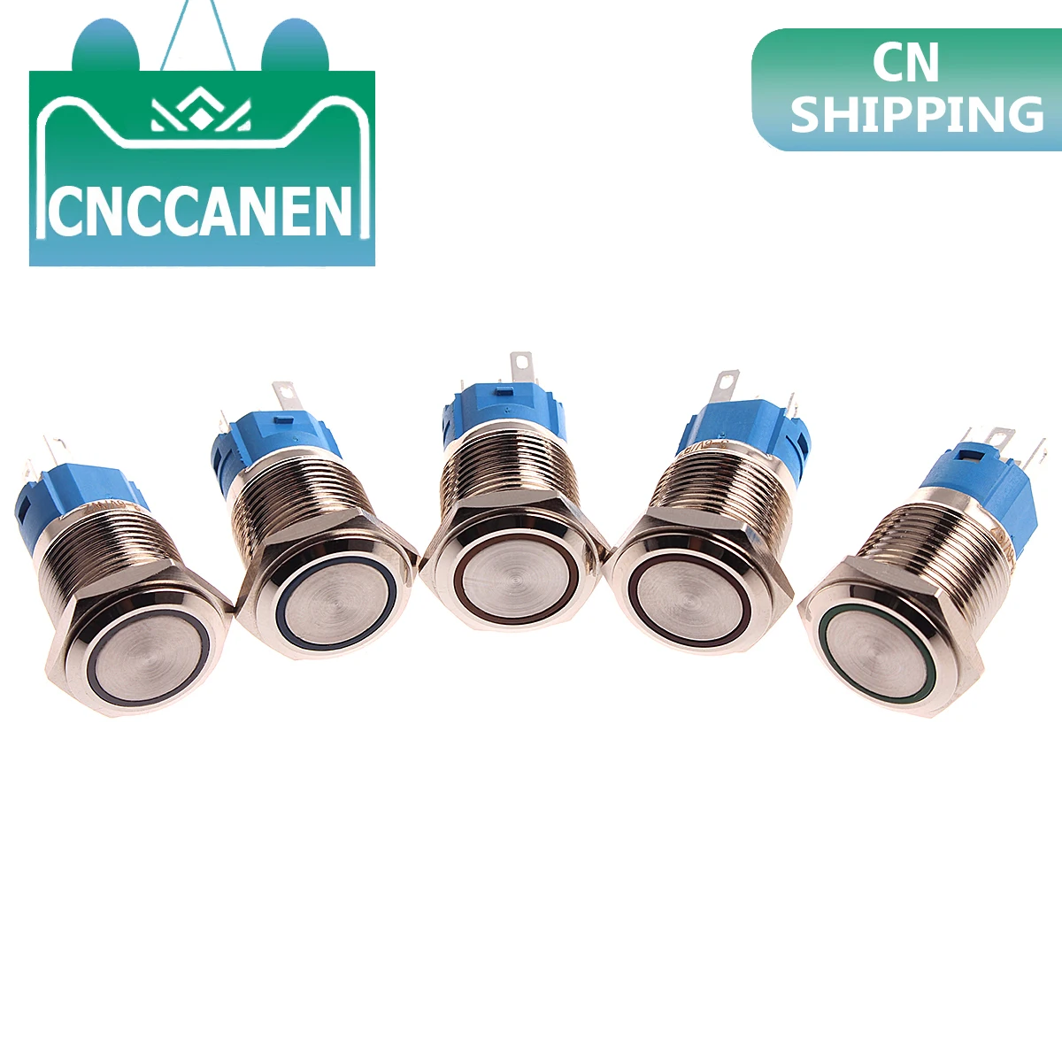 1 шт., металлическая кольцевая кнопка, 16 мм, 5 В, 12 В, 24 В, 220 В