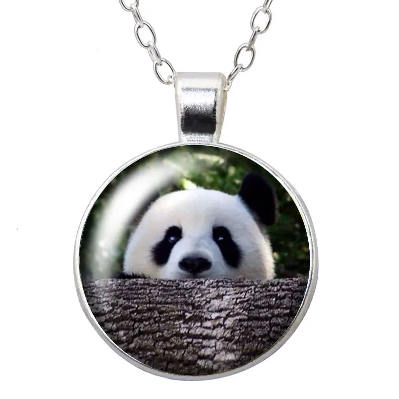 Ожерелье с круглым кулоном в виде животных, жирафа, панды, лебедя, слона, 25 мм, стеклянный кабошон, женское, для девочек, ювелирные изделия, подарок на вечерние рождения, 50 см