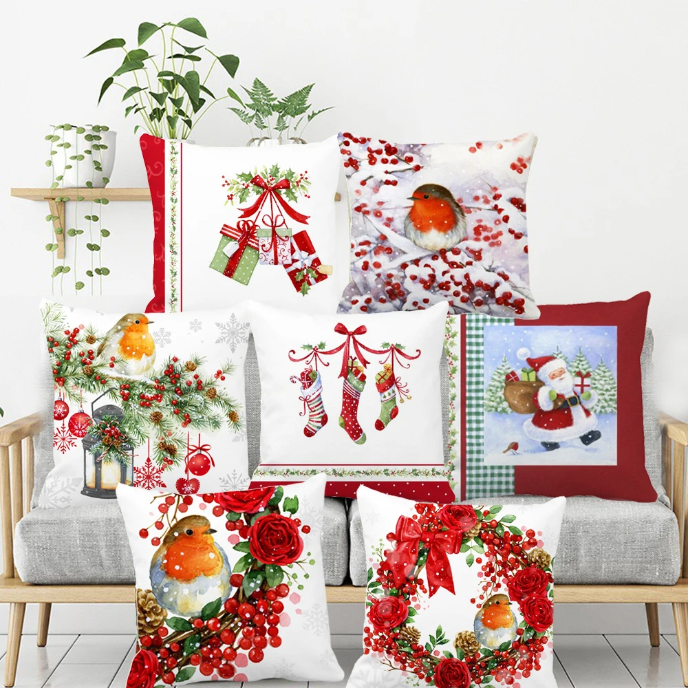 Рождественский домашний декор наволочка Robin рождественские носки птица Рождественская Подушка Новогодний подарок декоративные подушки для дивана