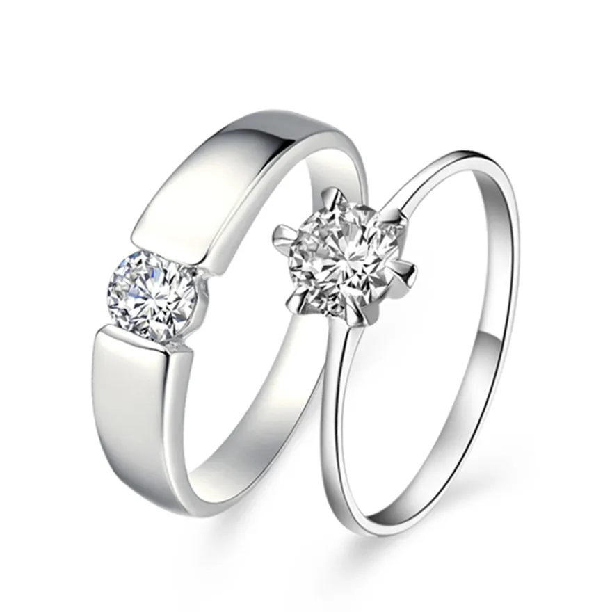Оптовая продажа, красивая модная Свадебная вечеринка, серебряный цвет Фианит, циркон, кристалл, парные кольца, ювелирные изделия, женские, мужские, Благородные Кольца, горячий подарок