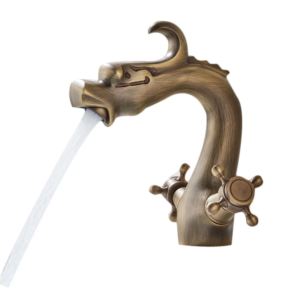 Кран для горячей и холодной воды бассейна кран античная латунь Ванная комната кран с двойной ручкой Дракон умывальник для туалета смесители на бортике одно отверстие