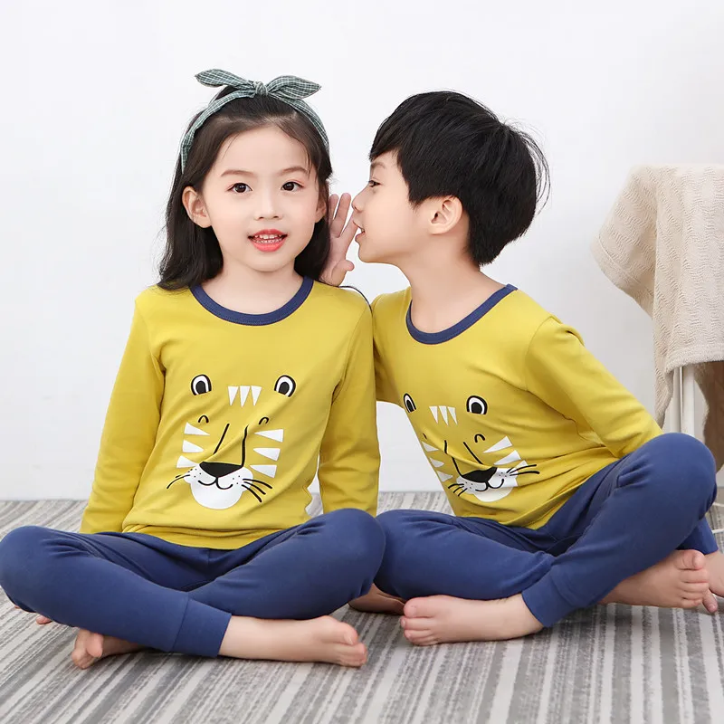 Осенне-зимний Пижамный костюм для девочек, пижама для мальчиков, Хл...