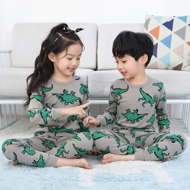 Детские пижамы для мальчиков с рисунком динозавра хлопковая одежда ...