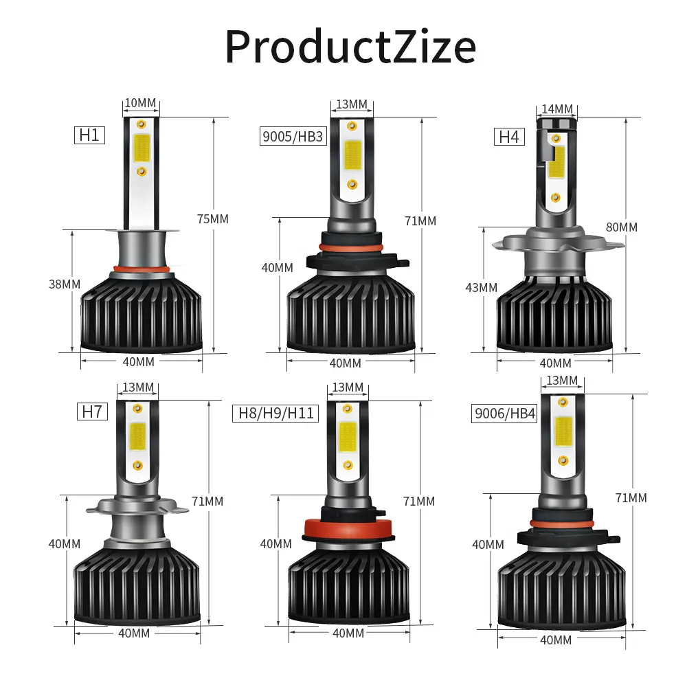 Автомобильная светодиодная лампа YHKOMS, для фар головного света, H4, H7, 3000 K, 4300 K, 5000 K, 6500 K, 8000 K, 25000 K, H1, H8, H9, H11, 9005, 9006, лампа противотуманной фары, 12 В