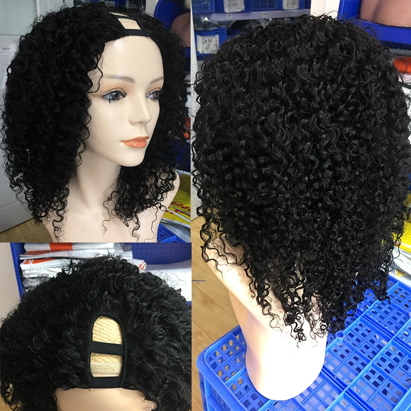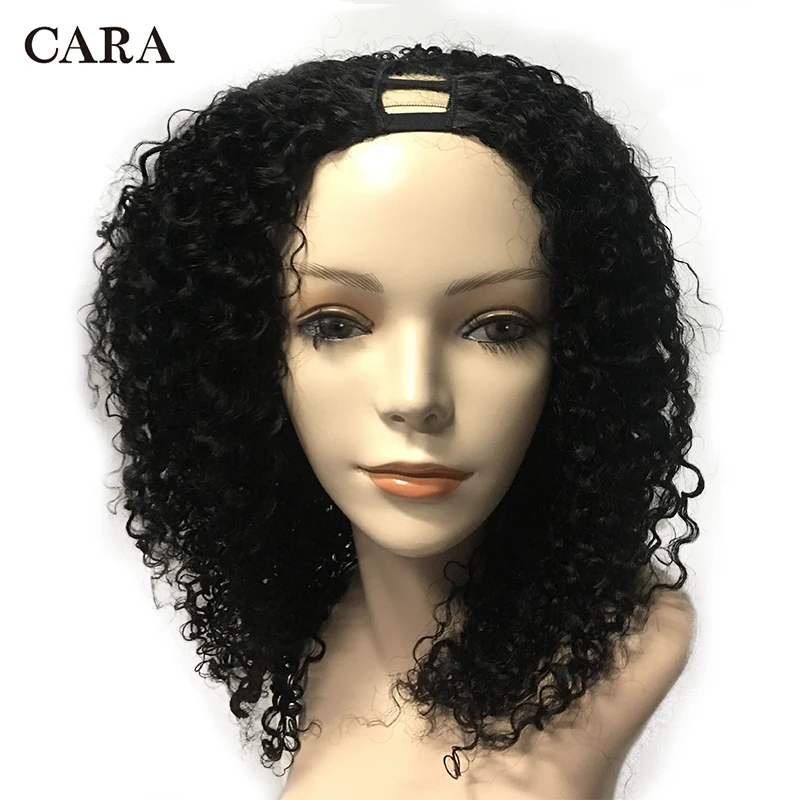 Неклеевой монгольский U Part Wig 3B 3C натуральные курчавые человеческие волосы, парики для женщин 250, высокая плотность, черный Remy Wig CARA