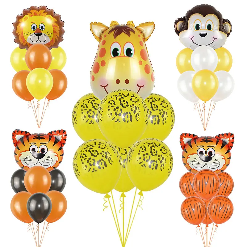 Фольгированные воздушные шары в виде животных в джунглях, тигр, Лев, обезьяна, Зебра, жираф, слон для будущей мамы, украшение для детского дня рождения, 1 комплект
