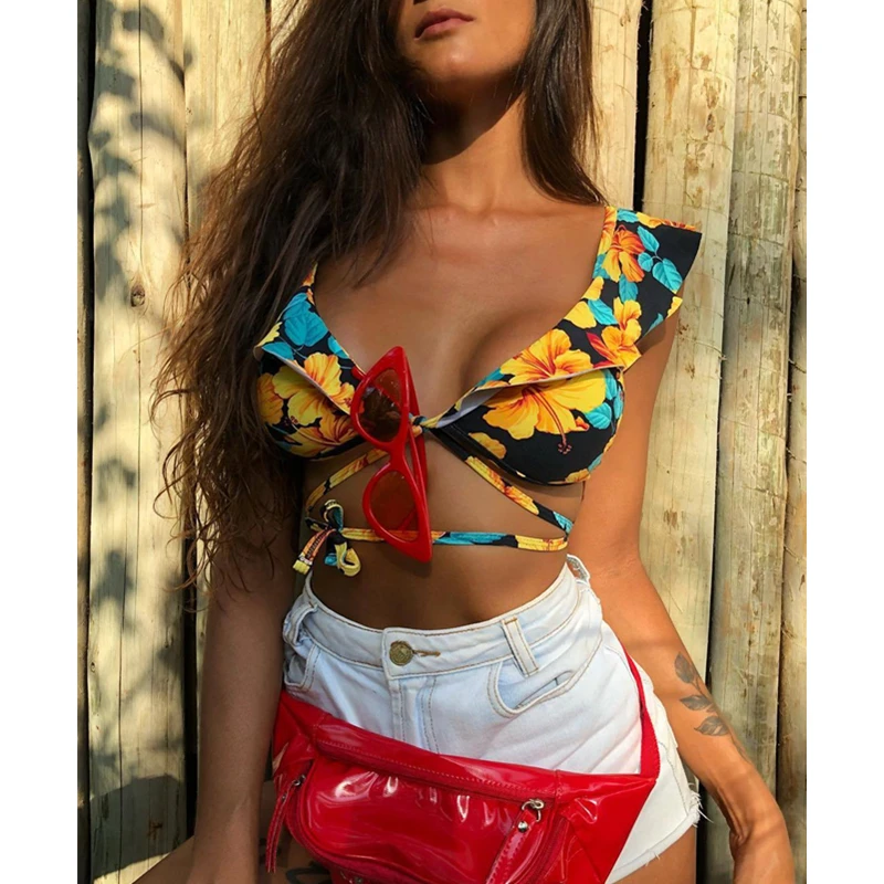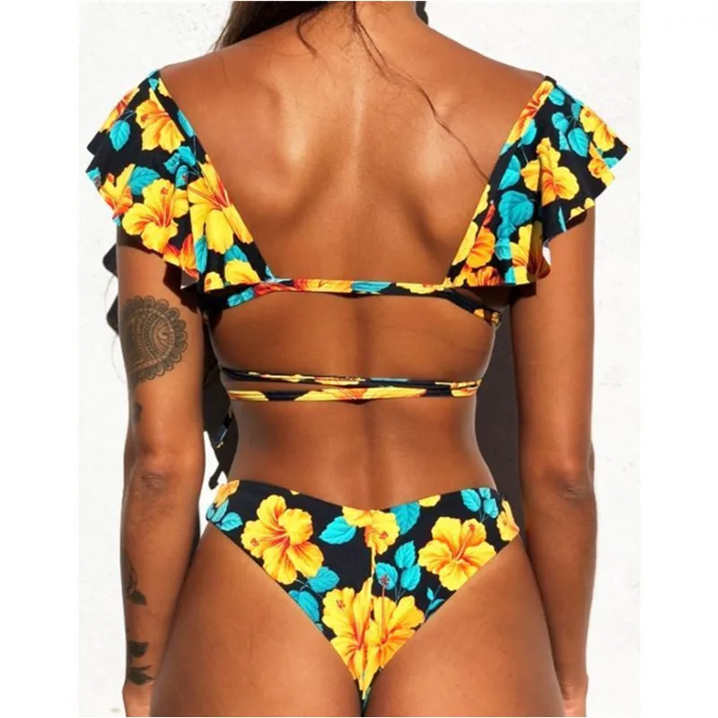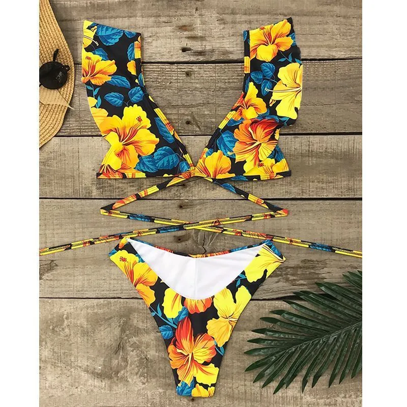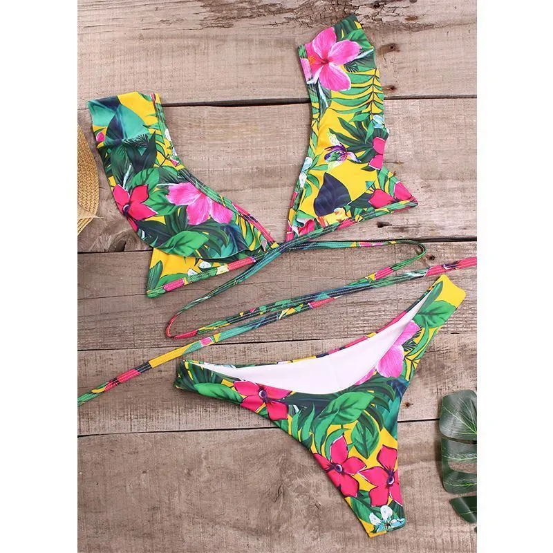 Женский купальный костюм, бикини с высокой талией и цветочным рисунком, купальный костюм с пуш-апом, бикини, Женское бикини, 2019