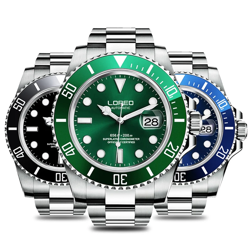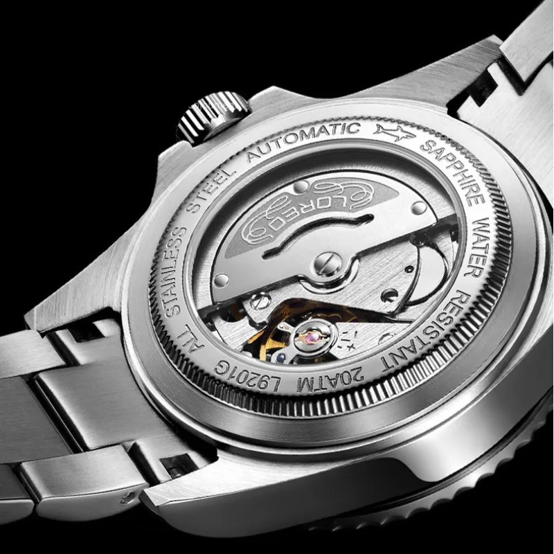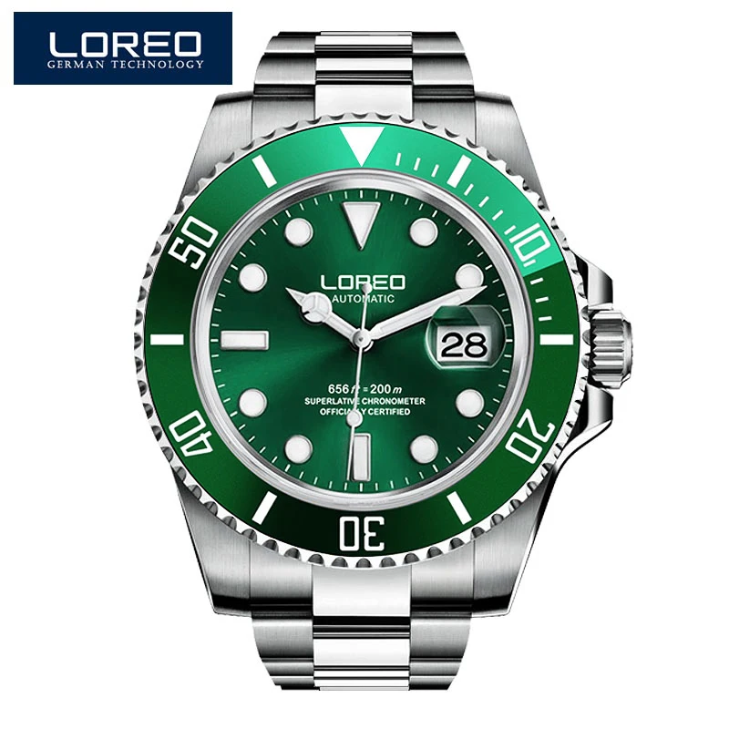 Мужские водонепроницаемые часы LOREO, 200 м, автоматические зеркальные часы с сапфировым стеклом, светящиеся механические часы с высокой четкостью, 2019