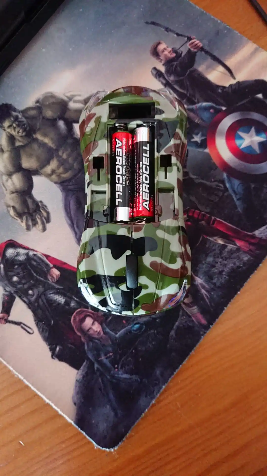 Мышь красивая, на деле пока не пробовала, отсек для батареек сверху, но пришла без упаковки
